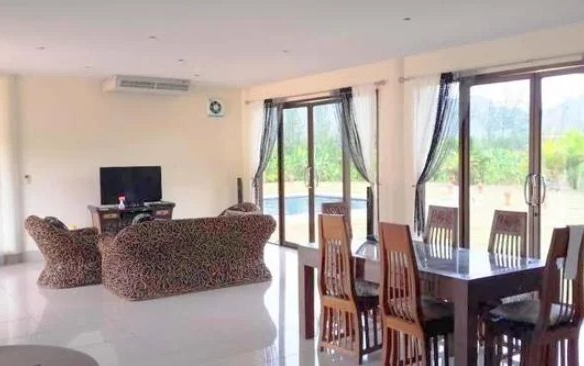 Large 6 bedroom, 2 storey pool villa comprising of 4 bedrooms and 3 bathrooms in the main house, 2 guest villas with 1 bed and 1 bathroom each on a 32,000 m² plot at 20 Rai.