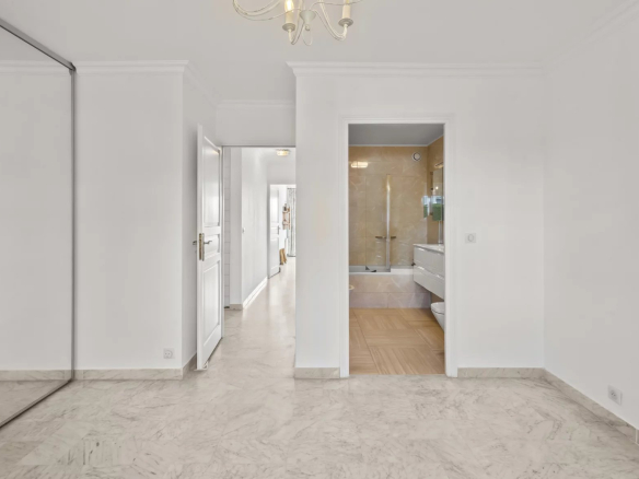 The sleeping area offers two en suite bedrooms, each with its own storage, complemented by a dressing room, a shower room and a bathroom.