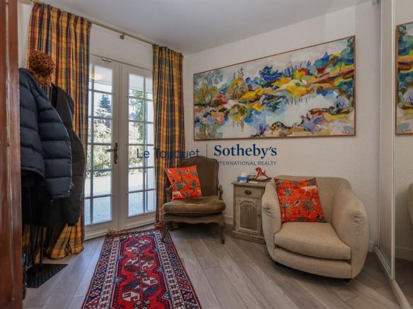 Set on a plot of nearly 1,800 m², Sotheby's Le Touquet presents this beautiful family villa, revealed at the end of the driveway after passing through the gate. The entrance opens into a bright living room thanks to its dual aspect and cathedral ceiling; a small, separate, open-plan kitchen flows seamlessly into this space. A long hallway then leads to two offices, two bedrooms with French doors, and a bathroom. The upper floor features a large mezzanine, a bedroom with its own shower room, a spacious landing/library, and a large, dual-aspect suite with reversible air conditioning and an en-suite bathroom.