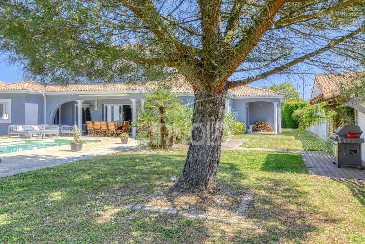 The landscaped garden of the house is a true haven of peace, adorned with umbrella pines that offer refreshing shade on hot summer days. You can also enjoy the beautiful swimming pool, which perfectly complements this outdoor space.