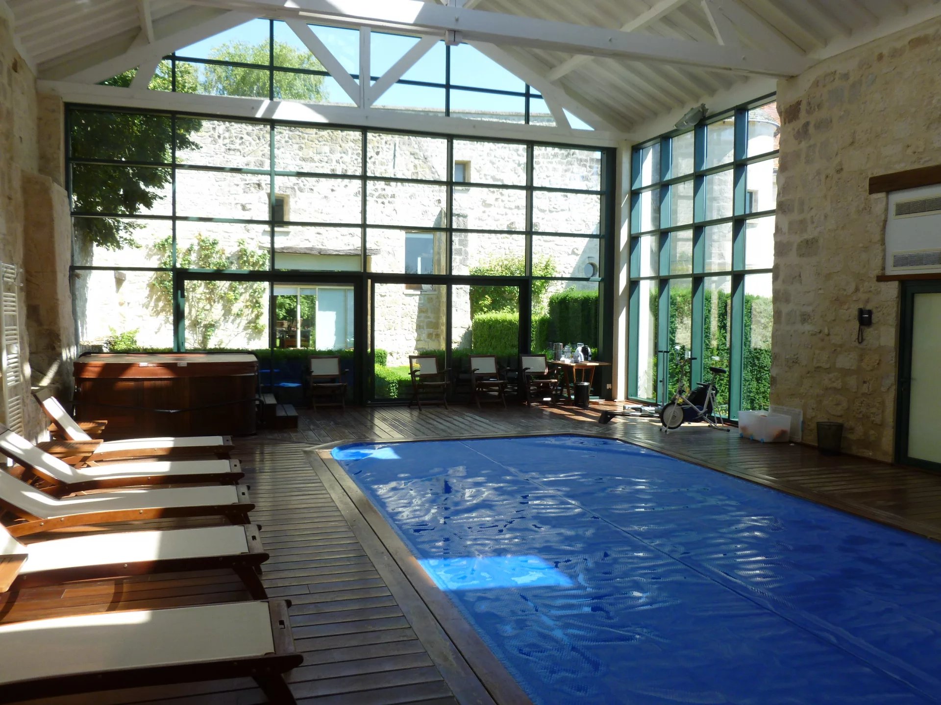 Outside, a wellness complex complements the high-end amenities: heated swimming pool, spa, sauna and changing room.