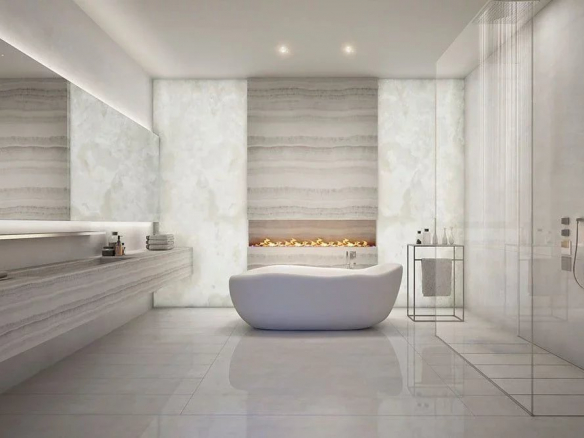 Artist renderings reflect the intended scale and interior design, subject to the sponsor's right to make modifications to material specifications and design. Views presented are approximate and may vary based on unit and floor. Not all residences feature the same material specifications, finishes, and appliances.