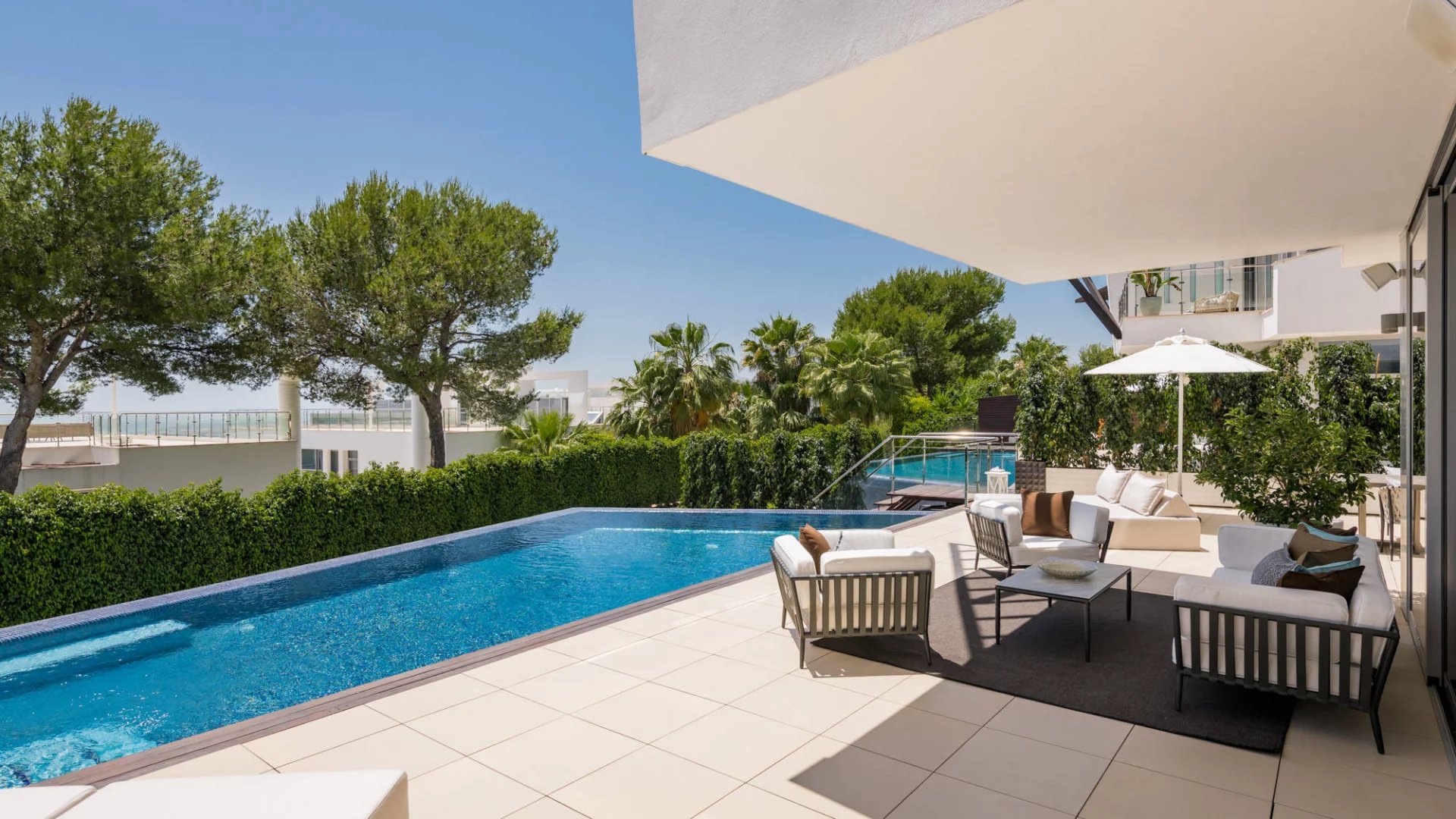 This luxurious modern home for sale in Sierra Blanca has been built to the highest standards and offers the finest qualities, comfort, and exceptional features. Thanks to its elevated position and southern orientation, it boasts incredible panoramic views of the sea and mountains.