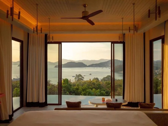 Sri Panwa is a luxurious property located in Thailand, perched atop Cape Panwa and offering breathtaking views of Phuket's southeastern tip. The property spans the entire Cape Panwa peninsula and is renowned for its tranquil and opulent atmosphere.