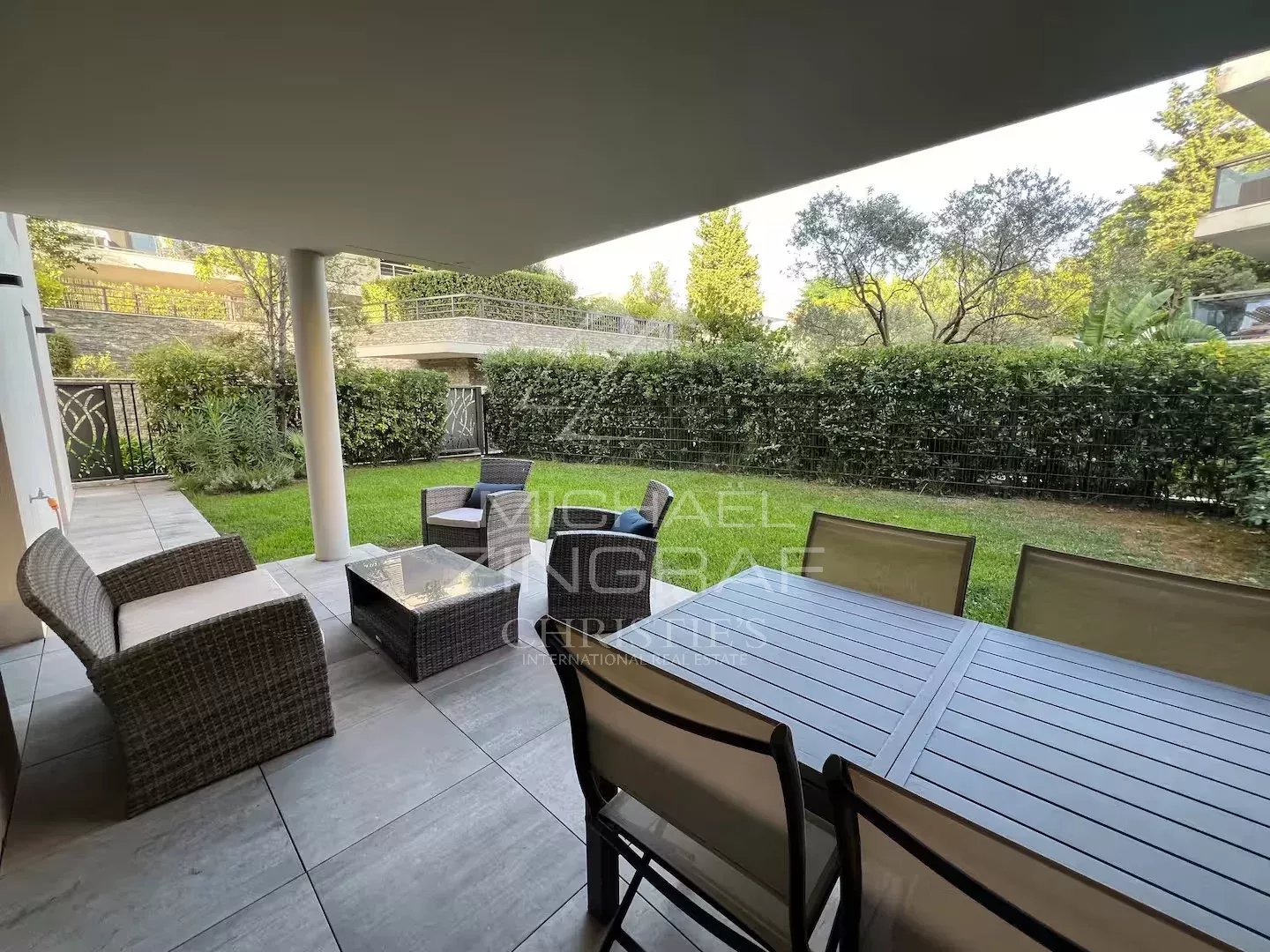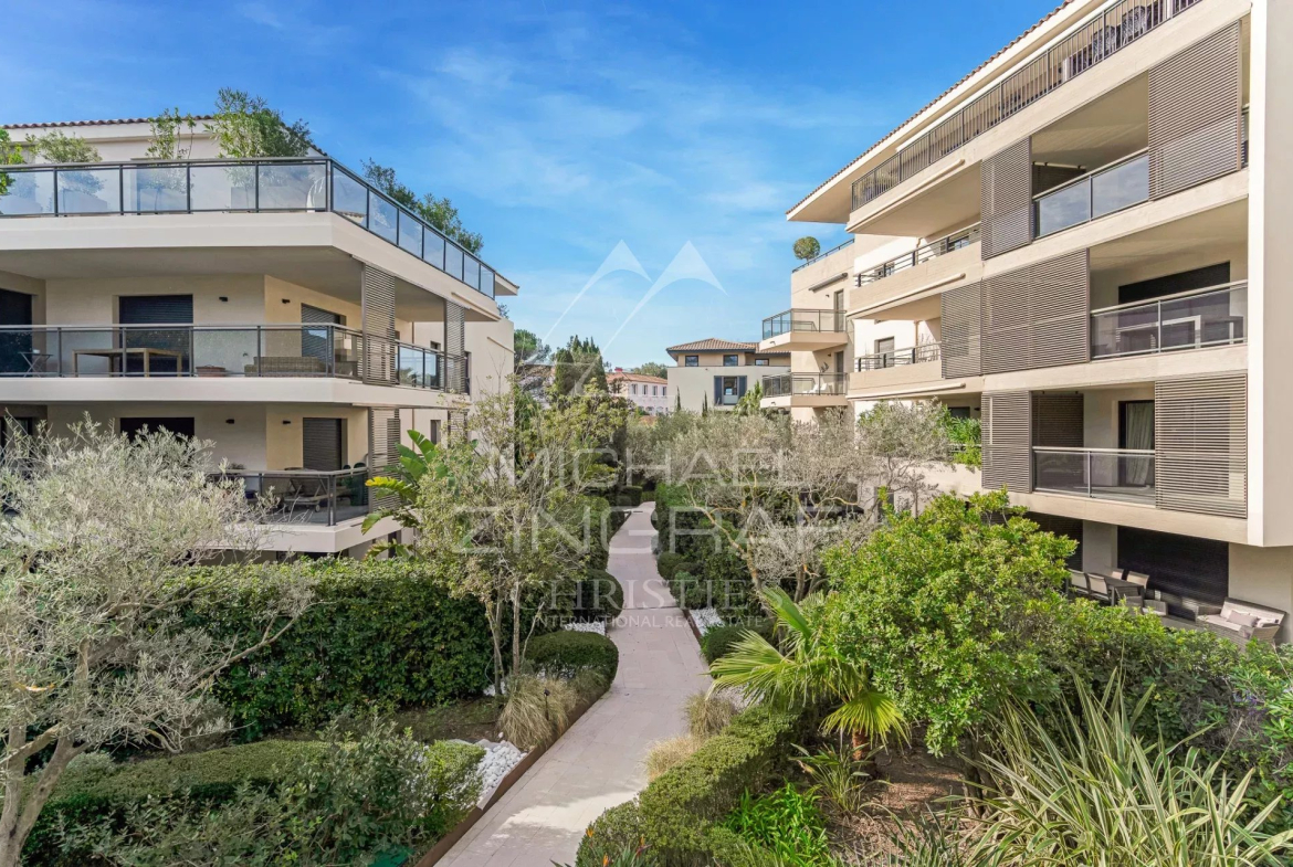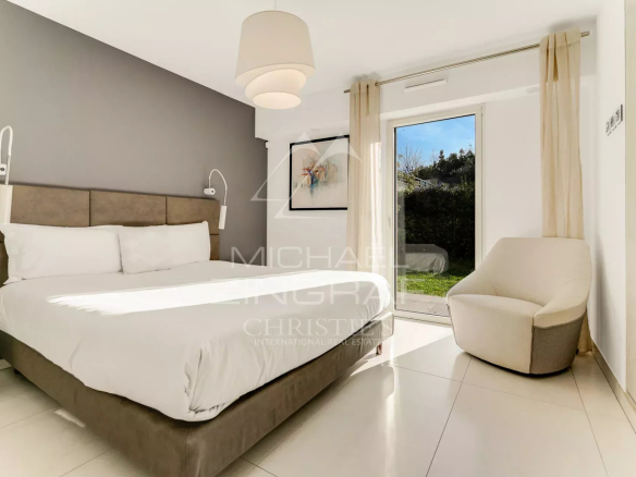 With its two spacious bedrooms, two modern bathrooms, and expansive open-plan living area encompassing the lounge and kitchen, every detail has been carefully considered to create a warm and inviting atmosphere. Whether entertaining guests or enjoying time with family, this space perfectly adapts to all your needs. Stepping onto the large terrace, you'll be immediately captivated by the peaceful surroundings and lush greenery of the private garden. It's the ideal place to relax, host al fresco dining, or simply enjoy the mild, sunny climate of the French Riviera year-round.