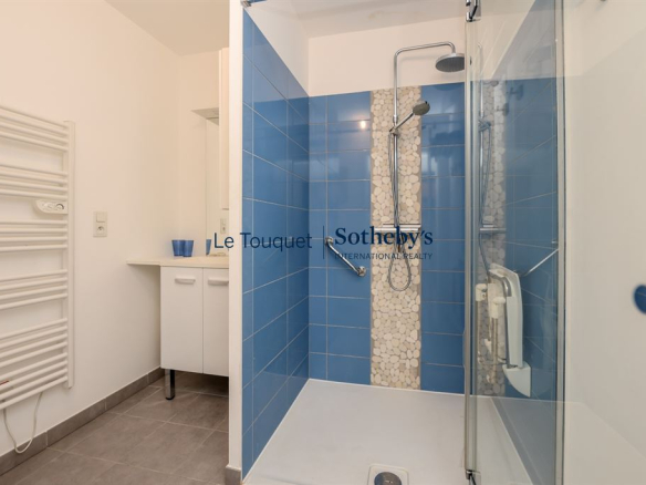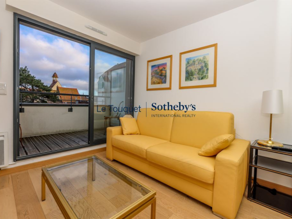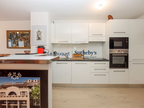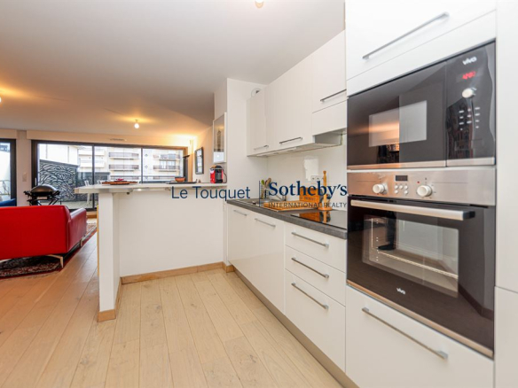 In a beautiful building located in the heart of the resort and just steps from the seafront, Sotheby's Le Touquet offers a nearly 80 sq m apartment on the 3rd floor with elevator. The apartment boasts spacious rooms and high-quality features: solid wood flooring, an open-plan fitted kitchen, double-glazed windows, and a sliding door. The 30 sq m living room opens onto a large 14 sq m wooden terrace.