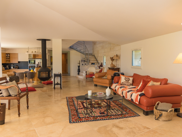 - Bright living room: 47 m², suspended stove, access to a 48 m² terrace