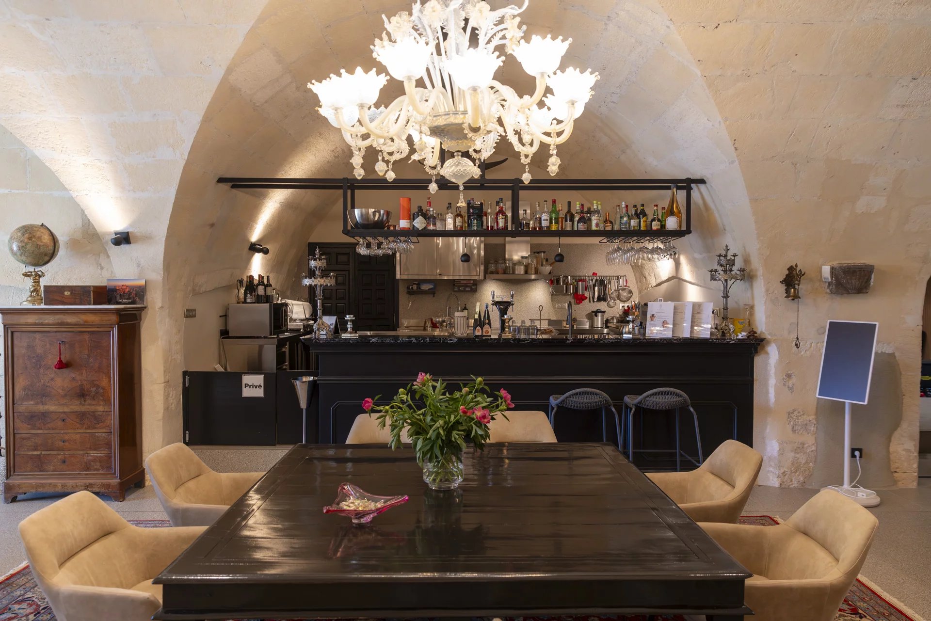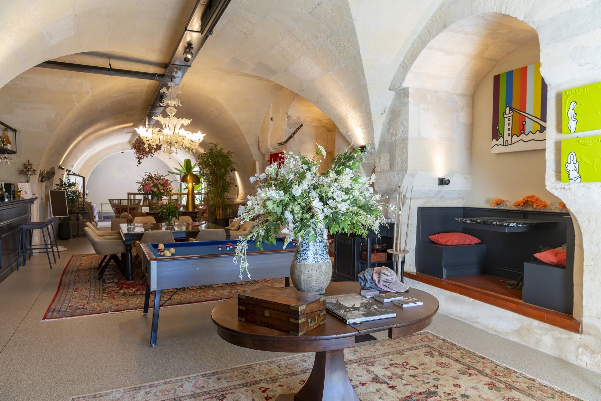 Upon entering, a majestic vaulted living room reveals the history of the property: once an oil mill, it now serves as a unique, warm, and inviting reception space. This characterful property comprises three independent apartments and three spacious bedrooms, each carefully designed to ensure privacy.