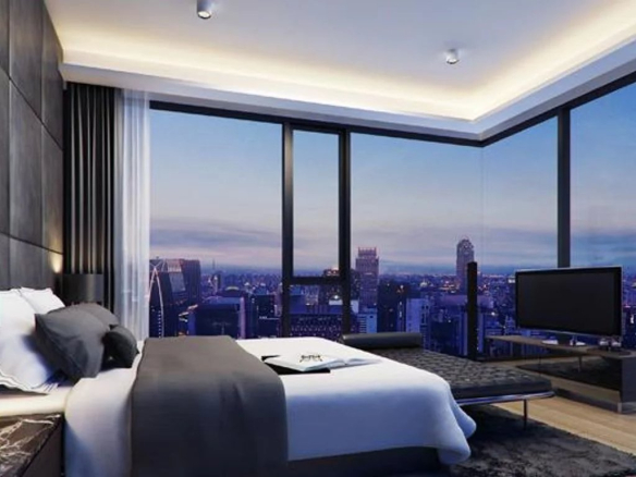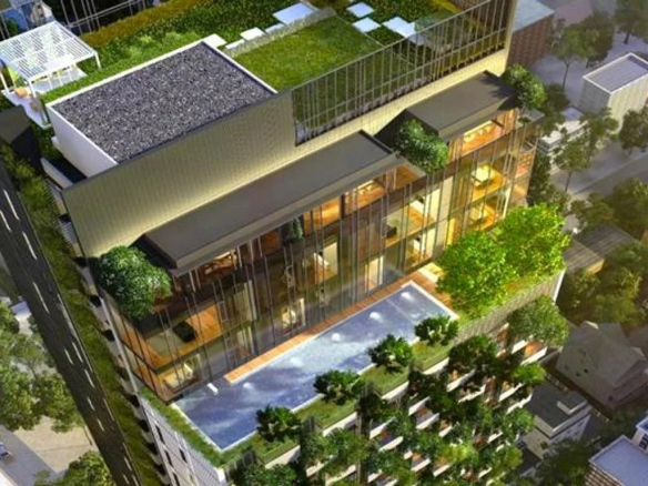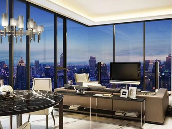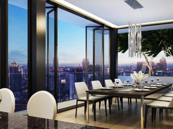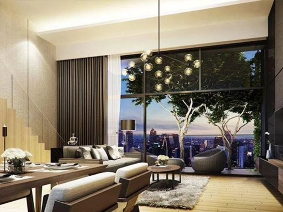 This modern luxury 3 bedroom penthouse in Bangkok is a natural blend of luxury and nature – effortlessly designed by architect Somdoon with the idea of “living in the forest”. Featuring a relaxing balcony with private terraces and porches, the house is full of greenery where you can relax in the shade of trees lined with ivy canopies. Architectural design reflecting a series of colorful trees while providing a high-rise balcony to accommodate future tree development. There is an exclusive private elevator entering directly into the house and smart parking, which integrates seamlessly with new generation lifestyles. Each private elevator has one continuous floor to create a more comfortable atmosphere on the balcony. The Morph room with its ceiling height of 4.2 meters and the normal room has a ceiling height of 3.2 meters including the very high ceiling room. The appearance of the building is designed with the sense of nature. Green space is the meaning of home. Putting perennial plants on the balcony will help the image on the exterior of the building as if the whole building had trees inserted.