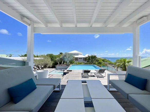 Superb furnished villa located in a secure residential area by the sea in Cul-de-Sac, offering an exceptional living environment and breathtaking views of the sea and the island of Saint-Barthélemy.