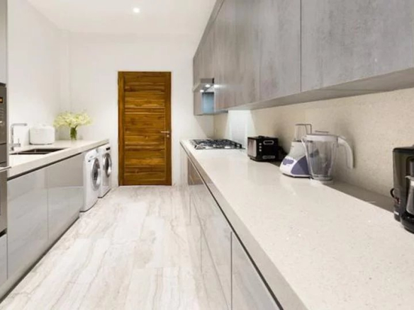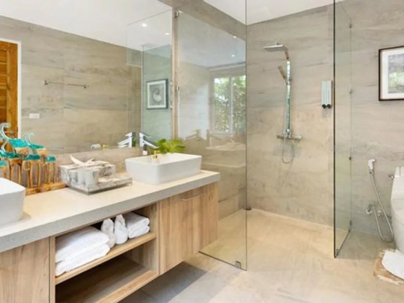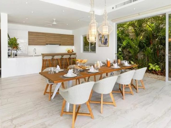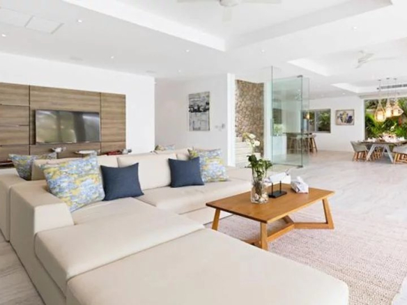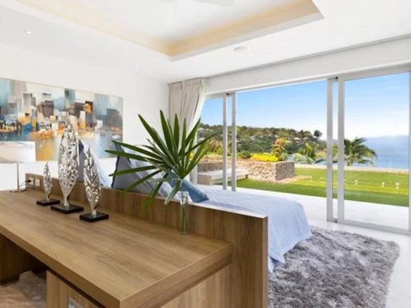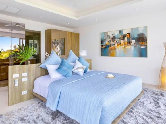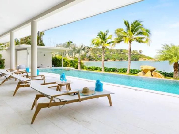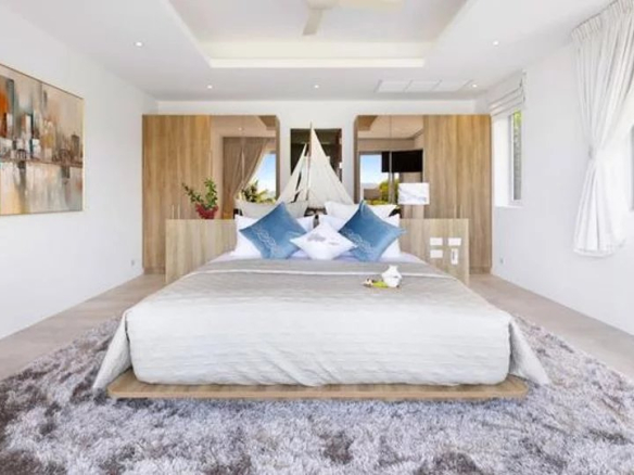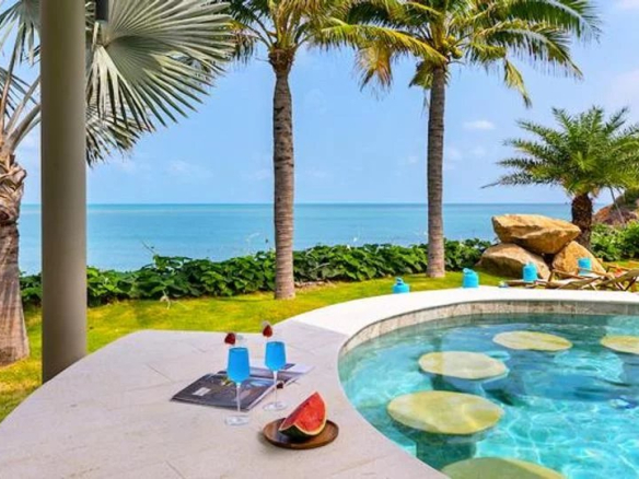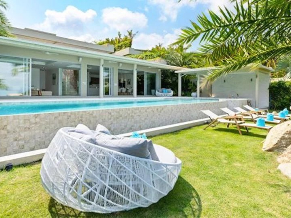 This ultra-luxurious beachfront villa for sale in Plai Laem is situated in an exclusive beachfront area, close to prestigious 5-star resorts and just a 10-minute drive from Koh Samui International Airport. Attractions such as the Big Buddha, Wat Plai Laem, Choeng Mon Beach, and a range of amenities are only a 5-minute drive from this exclusive gated community. This supremely luxurious 4-bedroom villa has been finished to the highest specifications, with seamless interiors and outdoor living space spread across three impressive levels of ocean-view luxury living. A spacious open-plan living and dining area opens onto a vast sun terrace and a 16-meter private infinity pool with direct access to the beach and landscaped gardens. The interior of the property on the main lower level includes a spacious, chic, contemporary living room and a fully equipped designer kitchen with a large breakfast bar/island, a mirrored backsplash, and high-end brand-name appliances and accessories. The villa features four spacious bedrooms located on the middle and upper levels, each with an elegant en-suite bathroom and private sun terraces offering spectacular sea views. This unique villa has been designed to offer the epitome of luxury tropical living and presents a rare opportunity to own a luxury beachfront property in an idyllic location.