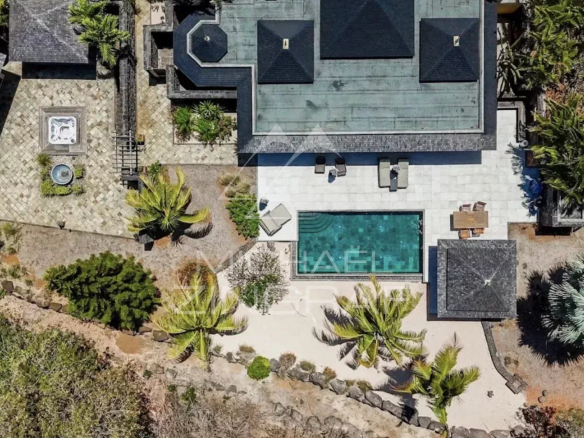 Set on a stunning 2,845 m² wooded plot, the property offers approximately 551 m² of living space. It features five en-suite bedrooms, each designed as an intimate and refined retreat, as well as spacious living areas bathed in natural light. The clean, timeless architectural lines create a warm and elegant atmosphere, ideal for family life or discreet entertaining.