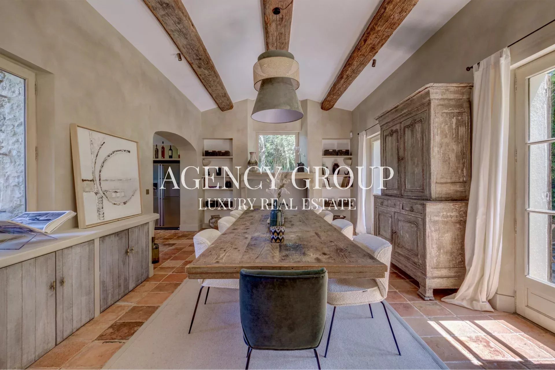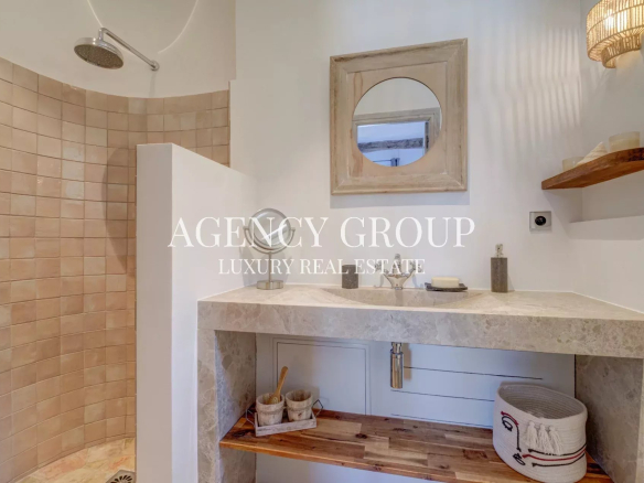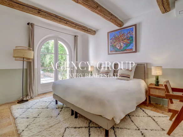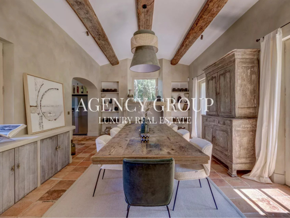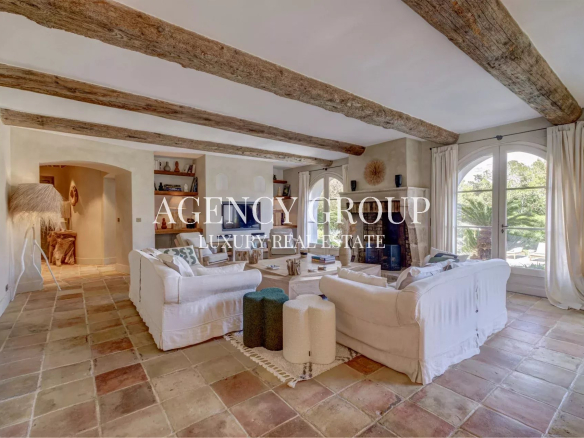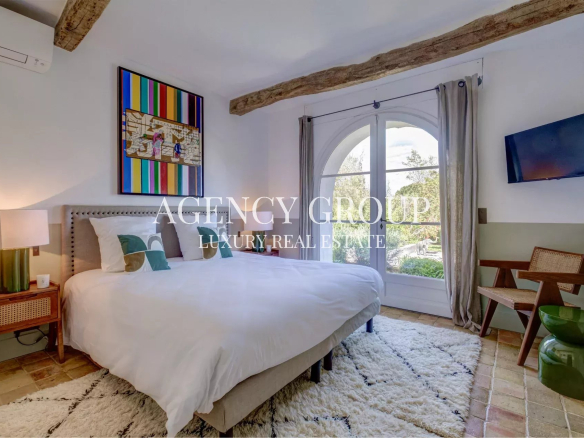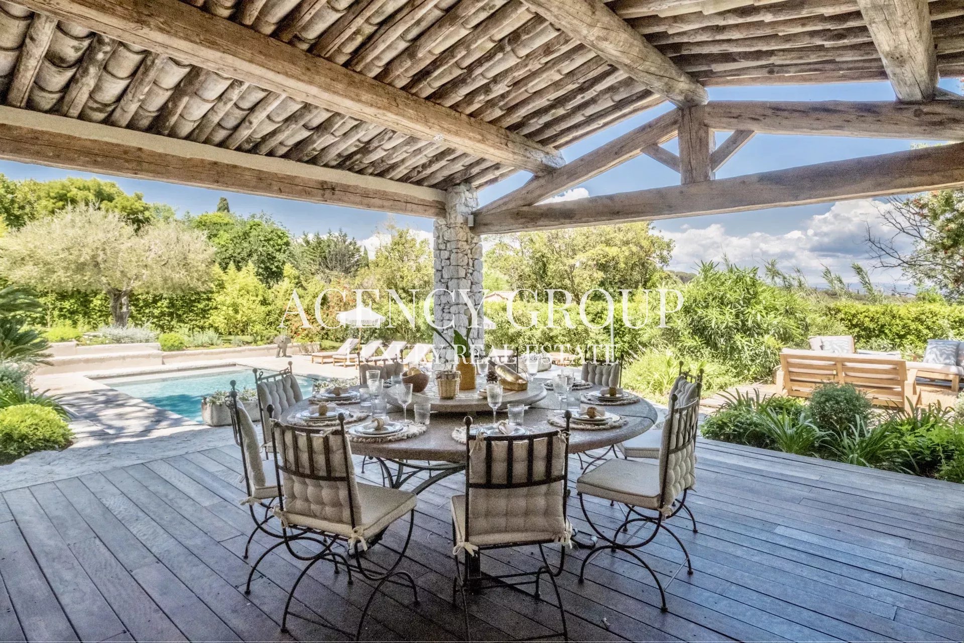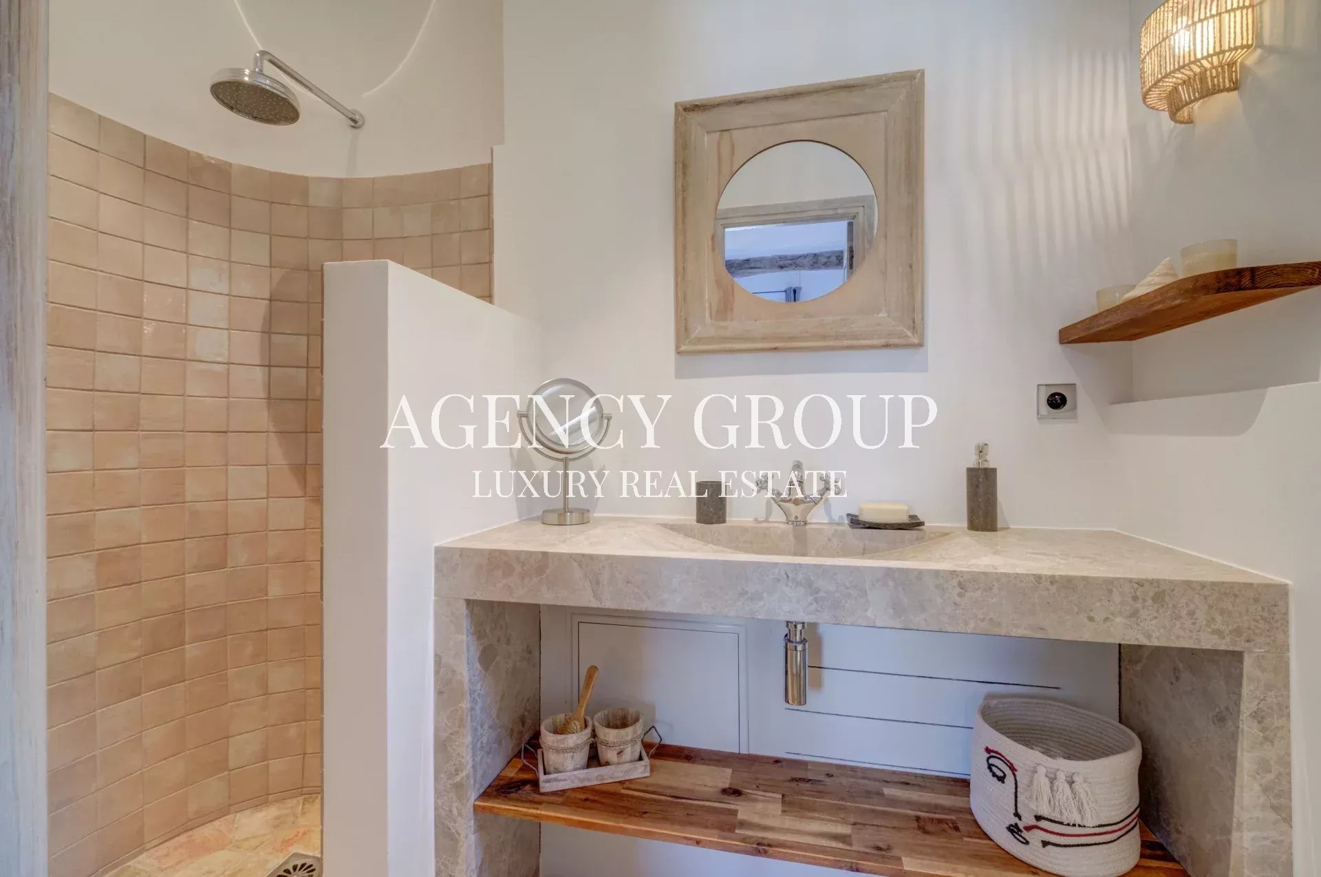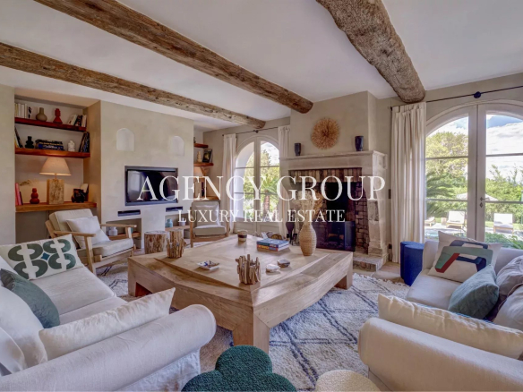 In the Belle Isnarde area of Saint-Tropez, a few minutes from the town centre and the beaches of Pampelonne, a sublime 300m2 villa completely renovated in a bohemian chic style on a wooded plot of 2000m2.