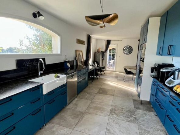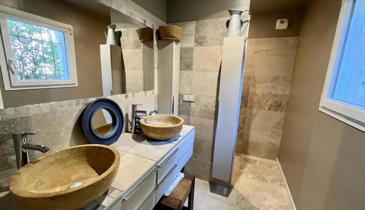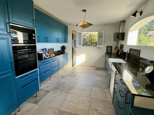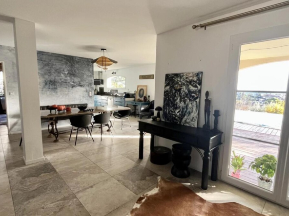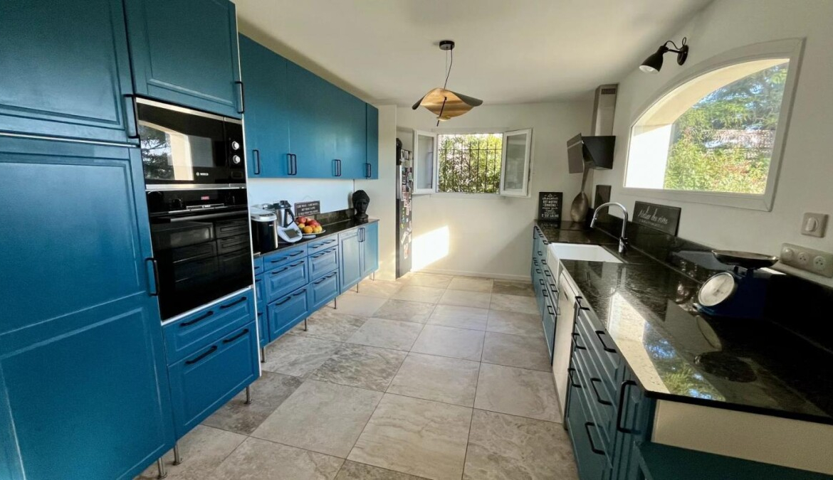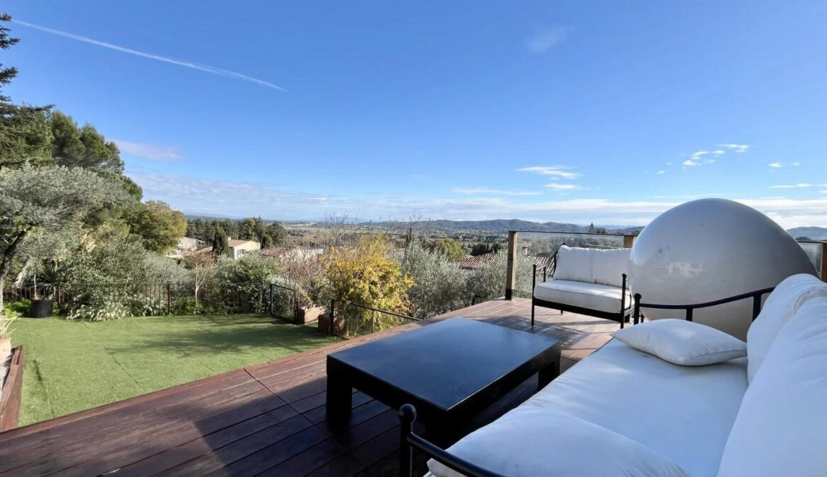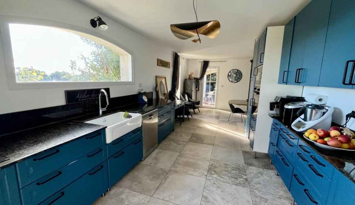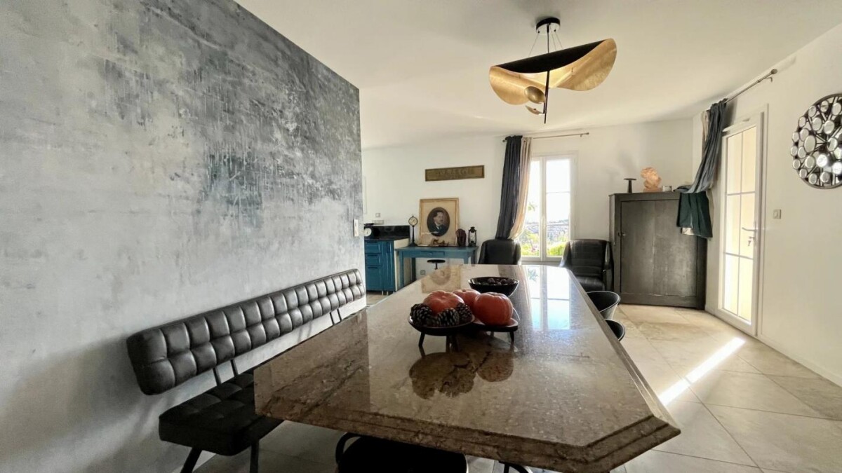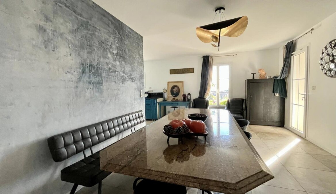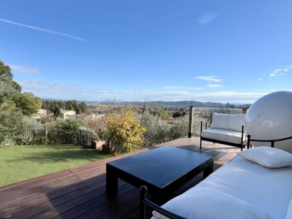 Located in a residential area on the hills above the town, this recently built villa (2016) offers a generous 220 m² of living space spread over two levels.