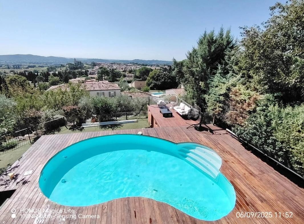 Outside, you will be captivated by the magnificent terrace overlooking the panoramic views of the village and valley, ideal for enjoying evenings outdoors. The heated swimming pool and its teak deck offer a perfect relaxation area with breathtaking views that never cease to amaze.