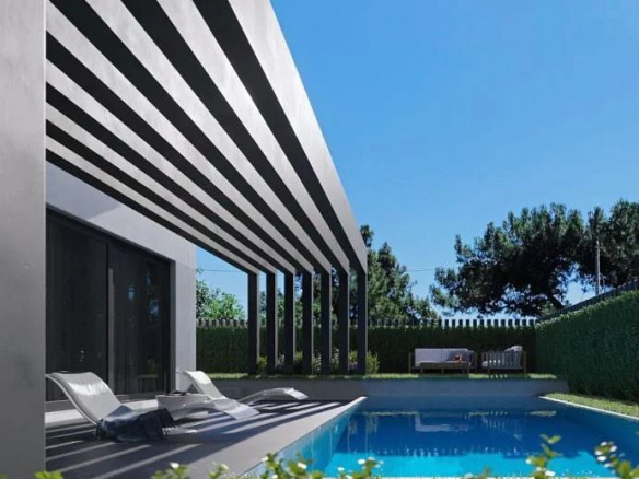 The beautiful ceiling height and large floor-to-ceiling glass doors add to its appeal, offering a magnificent view of the garden and pool.