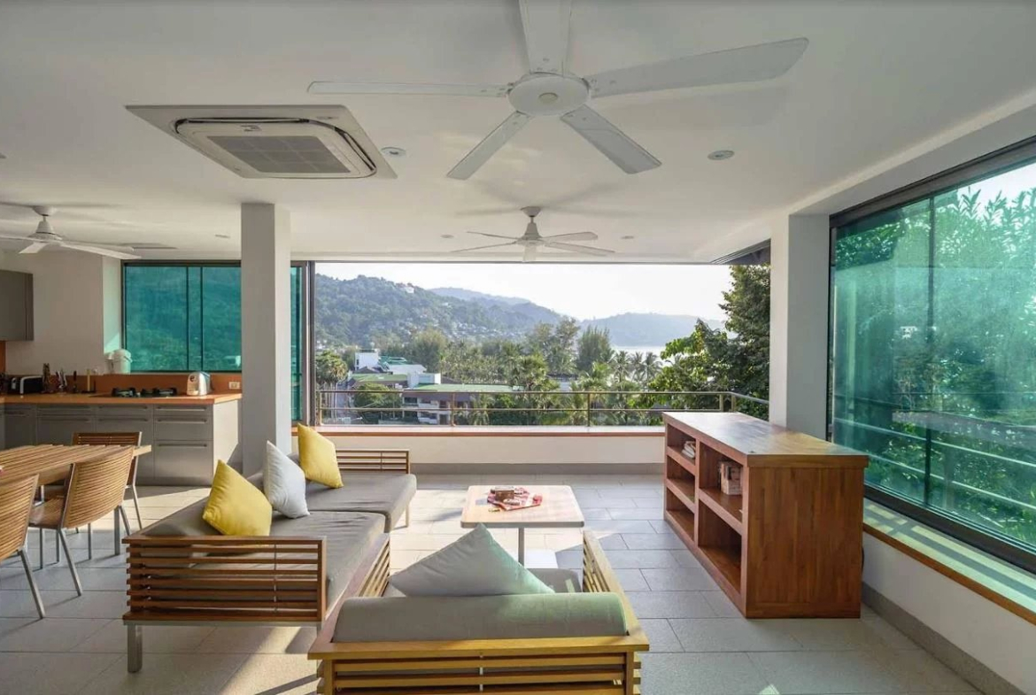 Spacious patio: a large outdoor space, probably connected to the living space, which provides space for relaxation, recreation and outdoor activities.