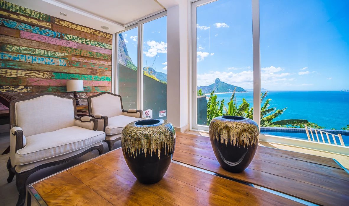 Magnificent luxury villa located in the heart of one of the most prestigious areas close to the famous cliffs of Joa, from which it is possible to see the ocean and the magnificent mountains of Rio.