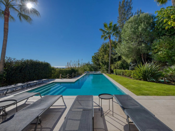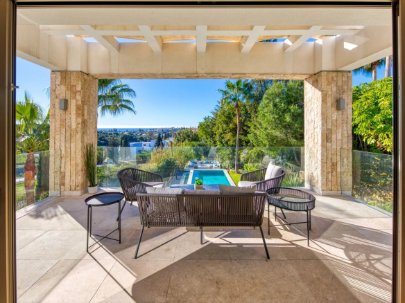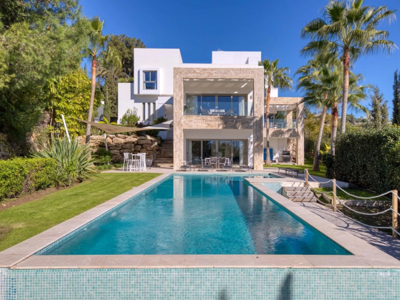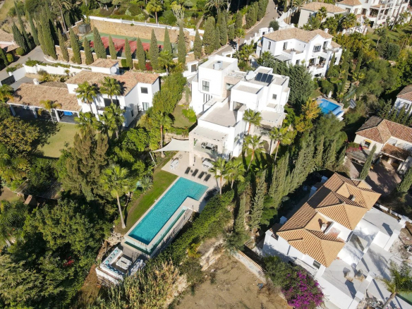 Casa Blanca is a stunning modern villa located in the prestigious Benahavis district, El Paraiso Alto, in a cul-de-sac, just a 10-minute drive from Puerto Banus and 15 minutes from Marbella city centre.