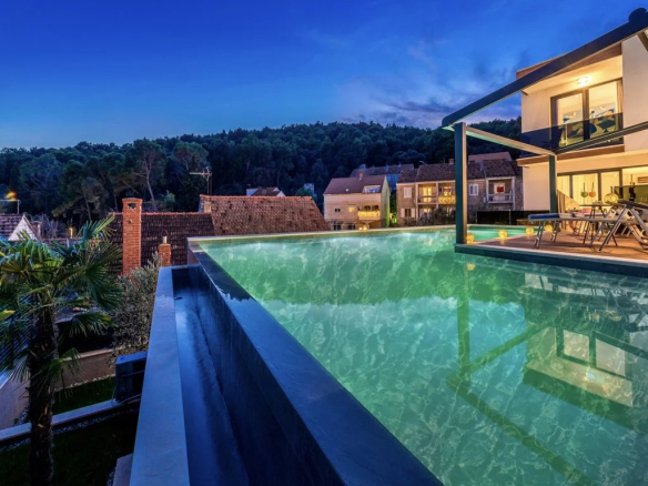 Looking for a modern home on the island of Korčula and unsure where to start? At Croatia Real Estate, we might have just the place for you! This stunning architectural gem was built in 2020 and is located on Korčula, one of the most beautiful islands in Croatia and on the entire Adriatic coast. Often called the Emerald Isle, this wonderful location is perfectly situated next to other famous islands such as Brač, Mljet, Lastovo, and Vis. Surrounded by breathtaking nature and incredibly clear water, you'll fall in love with this place! Not only will this prime location allow you to experience the luxury of the region's natural beauty, but you'll also be making a sound investment. As one of the most influential real estate companies, Croatia Real Estate will offer you the best quality and experience for your money! As Korčula is highly sought after by real estate agents, you're investing not only in a lifestyle but also in a long-term project whose value will only increase over time. A true architectural masterpiece, this contemporary 255 m² villa on two levels will amaze you! The perfect location makes this property a real gem, as the beach is just 100 m from the house and Korčula town center is only 500 m away. Ideal for those looking for a property slightly outside the urban area but still close to all the tourist attractions and the hustle and bustle! It boasts five spacious and ultra-modern bedrooms and six bathrooms. The entire house is fully furnished and equipped with some of the most luxurious appliances on the market, and with its unique and impeccable design style, this home stands out from anything you've seen before and will offer you the luxurious and sophisticated lifestyle you're looking for! Besides the top-of-the-range interior and the combination of elegant, high-end materials such as glass, stone, and wood, the absolute centerpiece of the house is undoubtedly the swimming pool. Almost resembling a work of art, its undefined lines and clean design enhance the atmosphere of the entire estate. Adjoining a spacious relaxation terrace, you can enjoy all the sunsets and natural beauty this location has to offer. Those seeking dynamism, entertainment, and well-being will not be disappointed! The house includes a fully designed and ready-to-use built-in sauna, a gym, and an entertainment room with a pool table! Ensuring all your privacy requirements are met, you are also guaranteed a spacious garage and a private entrance. This property is ideal for everyone, whether you are looking for a summer home or a permanent residence, and with its attractive looks and price, it could be yours!