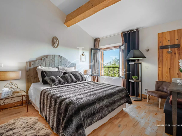 Outside, you will enjoy a free-form swimming pool, a fully equipped pool house and a barbecue area, perfect for entertaining.