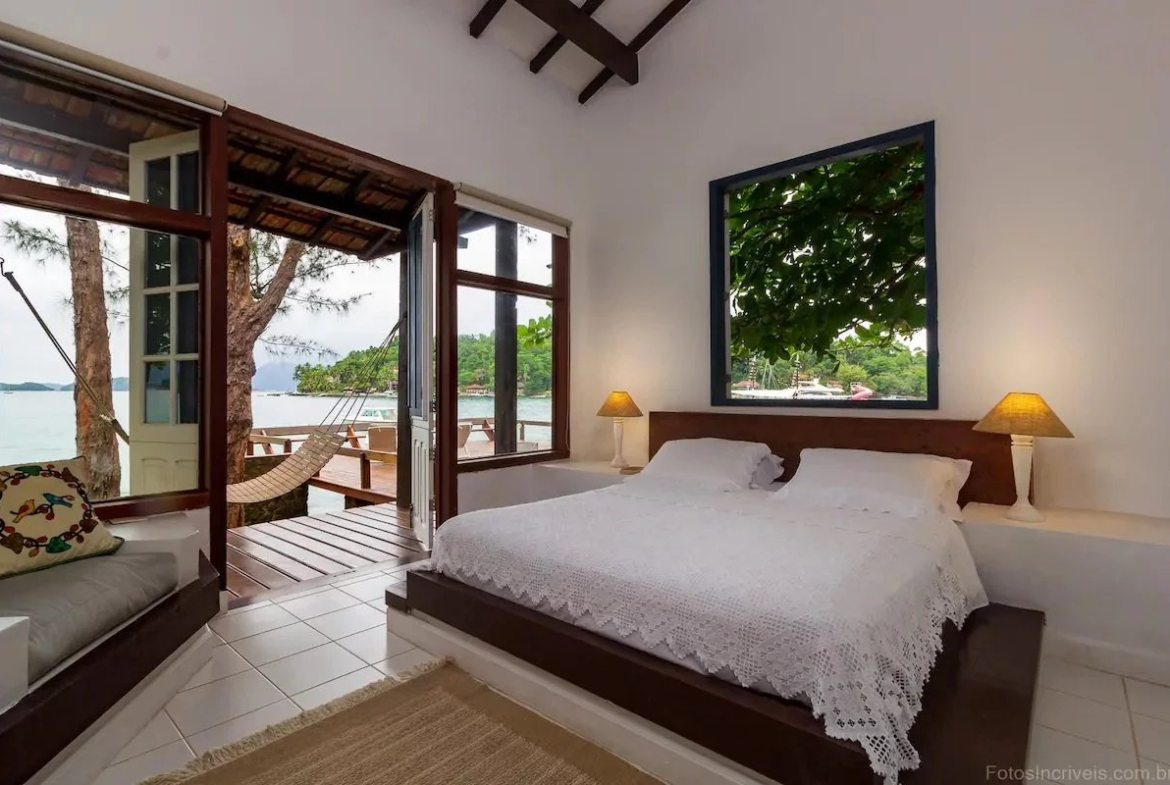 Superb villa of 500 m2 set on the sand in a paradise island in Angra dos Reis. This exceptional property has 5 bedrooms, 4 bathrooms and 6 living rooms.