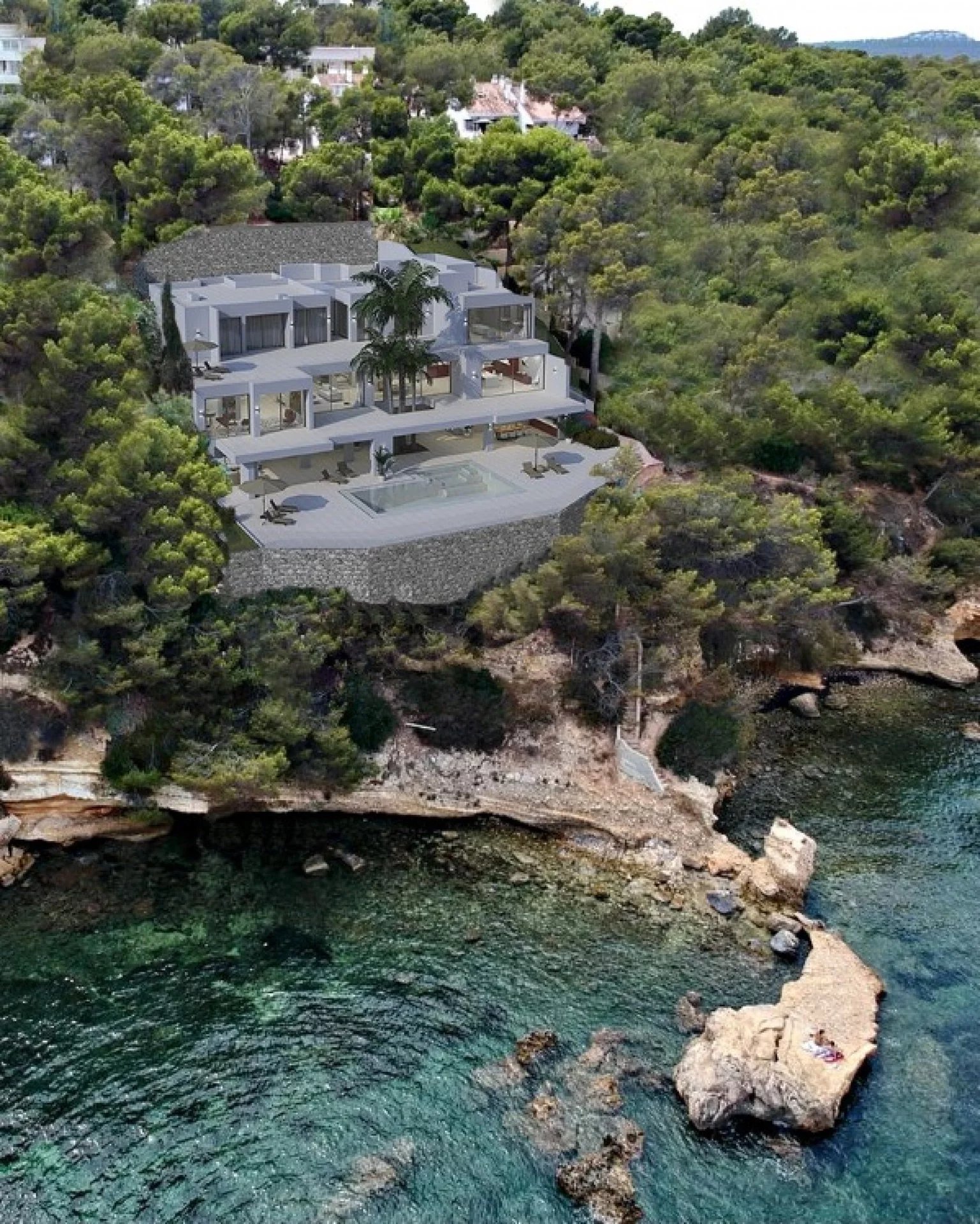 Cala Vinyas is nestled between two coves in southwest Mallorca, making it an ideal residential area for sea lovers. It is also close to the Poniente golf course and just 10 minutes from Port Adriano and Puerto Portals. The capital, Palma, is only 20 minutes away, and the international airport is just 30 minutes away.