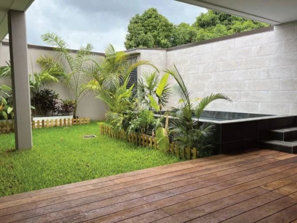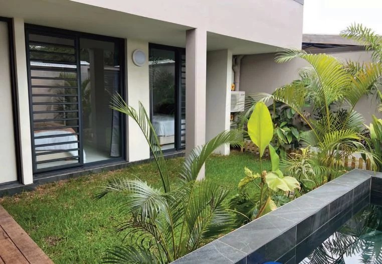 Loft apartment with 3 bedrooms, private garden and small pool in the heart of Papeete, Tahiti, in the Le Moana building with 16 apartments, concierge and live-in housekeeper, 2 enclosed parking spaces.