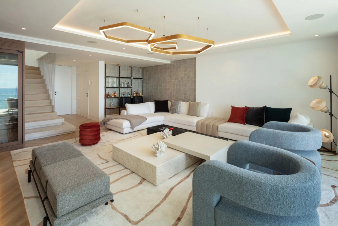 Orquidea 22 is a charming duplex penthouse nestled on the front line of Puente Romano Beach, offering a prime location within the gated community of Orquidea. This remarkable property features stunning sea views, impeccable interior design by Ambience and an irresistible atmosphere. The main floor features a spacious living room adorned with floor-to-ceiling sliding glass doors that flood the space with natural light. Meticulously decorated with tasteful furnishings and finishes, the use of neutral tones complemented by pops of bright colors creates a calming and inviting atmosphere. A double-sided fireplace separates the exquisite open kitchen and dining areas from the living space. From this level, direct access to the terrace leads to a covered dining area and relaxation area with stunning sea views. Each bedroom is a luxurious en-suite sanctuary, meticulously designed to elevate comfort and luxury. 'opulence. The elegant master bedroom offers ample space and a superb bathroom, while its private terrace with swimming pool and relaxation area overlooks the sea, providing a unique and exclusive retreat. With its south orientation, Orquidea 22 embodies a seaside paradise, perfectly positioned along Marbella's prestigious Golden Mile.