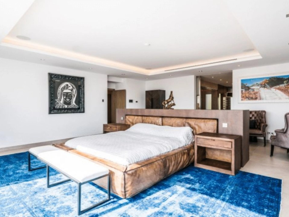 This magnificent villa features nine serene bedrooms and nine stunning bathrooms with luxurious oval freestanding bathtubs, thermostatic showers, and matching sinks and vanities to suit any ultra-modern home. An open-plan living area combines a lounge, a sitting room with a fireplace perfect for movie nights, reading, or afternoon naps, formal and informal dining areas, a bar, and a stylish, fully equipped, high-end, and custom-designed kitchen with top-of-the-range appliances. Exquisite living, dining, and entertaining spaces connect to 700 square meters of covered and sun terraces, beautifully landscaped gardens, outdoor lounges, a solarium, and al fresco dining and relaxation areas that invite you to unwind, practice yoga, enjoy sensational sunsets with a glass of wine, or savor a signature cup of coffee. Of particular note is the impressive infinity pool with waterfall and water features.