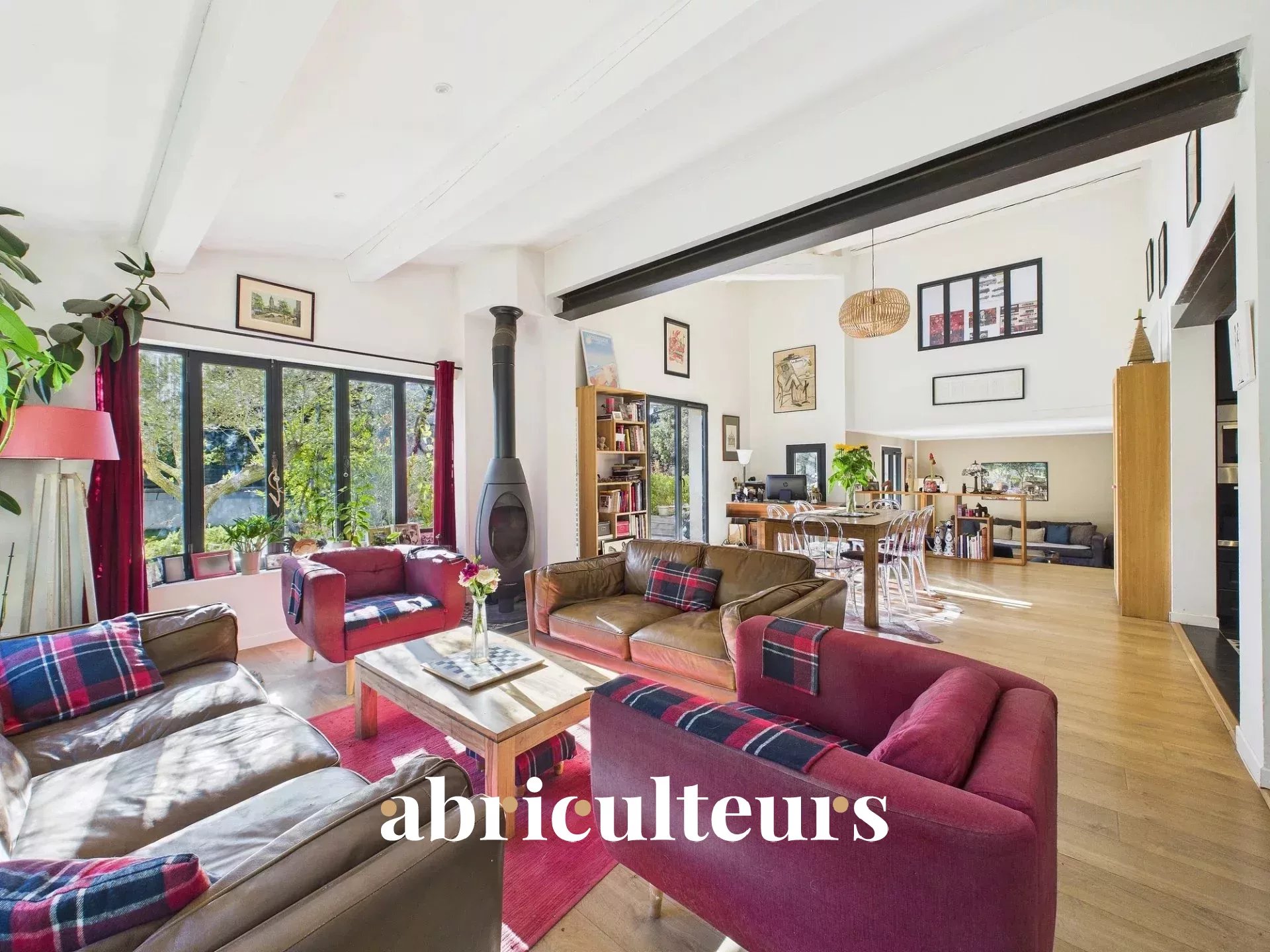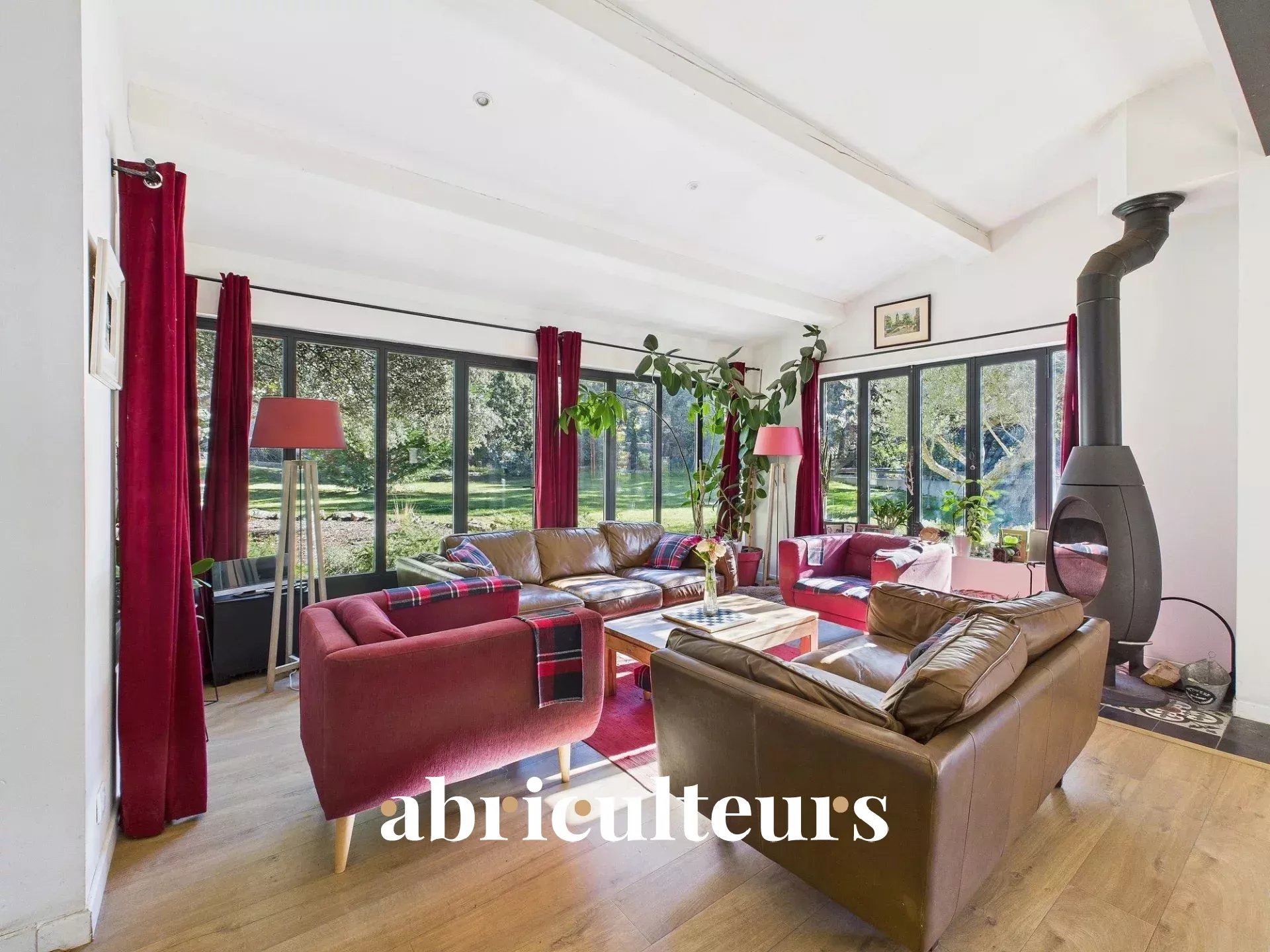 Tastefully renovated in 2016, the main house offers 207 sq m of comfort and light, spread over two levels. The living areas open onto beautiful tree-lined terraces: an open-plan fitted kitchen, a spacious, light-filled living room with a glass roof and wood-burning stove, a dining room with a cathedral ceiling, and a TV lounge with a fireplace create a welcoming and warm atmosphere. Two master suites with bathrooms on the ground floor, a toilet, an office, and a laundry room complete this level.