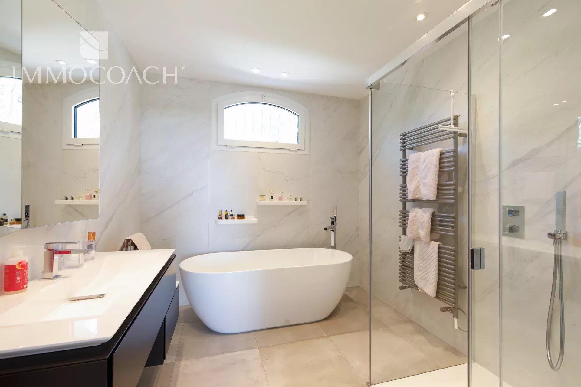 Close to Cannes and directly bordering the town of Mougins, this magnificent property boasts a commanding position with sea views in a sought-after residential area near all amenities.
