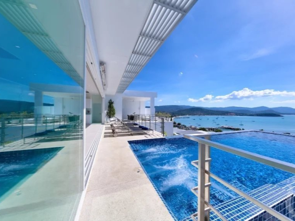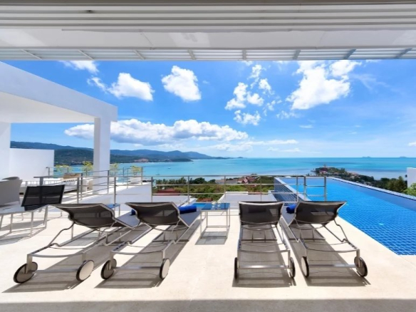 Relax in luxury, style, and tranquility at the magnificent The White Villa, superbly situated in a perfect location with breathtaking views of the shimmering turquoise sea and the Big Buddha Temple.