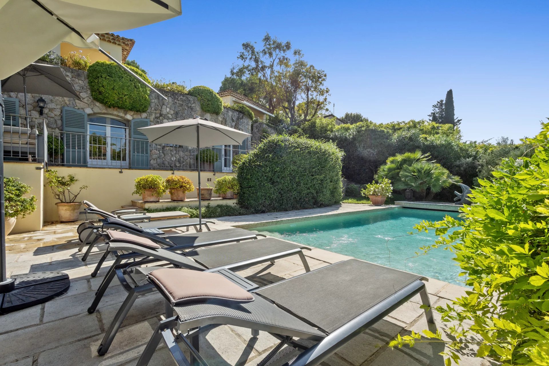 In Mougins, in a peaceful setting just steps from the old village, discover this charming villa of approximately 300 sq m on a lovely 1554 sq m wooded plot.