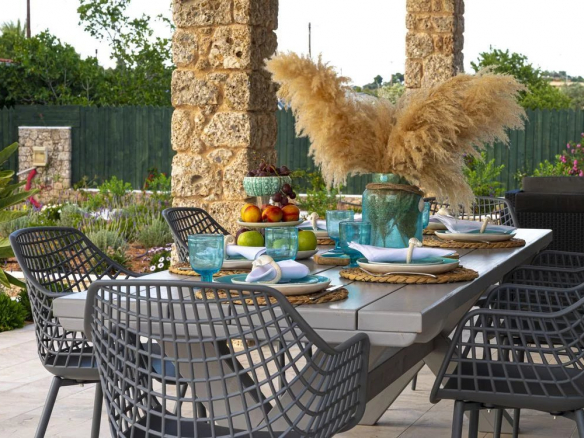 The villa comprises a bright and elegant living room with a fireplace, where you can relax on