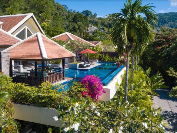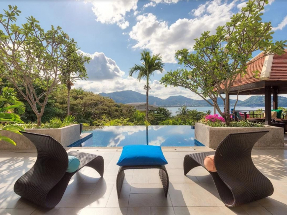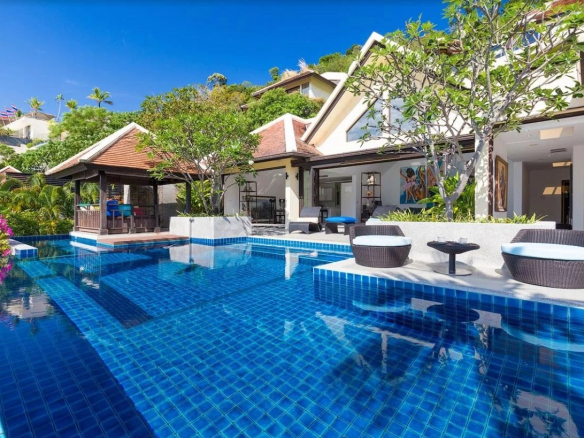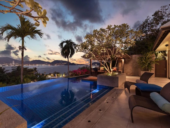 Unique villa with panoramic ocean and mountain views located in the upscale Indochine complex. It offers views of Patong Bay and Kalim Beach.