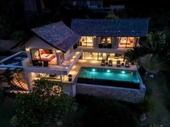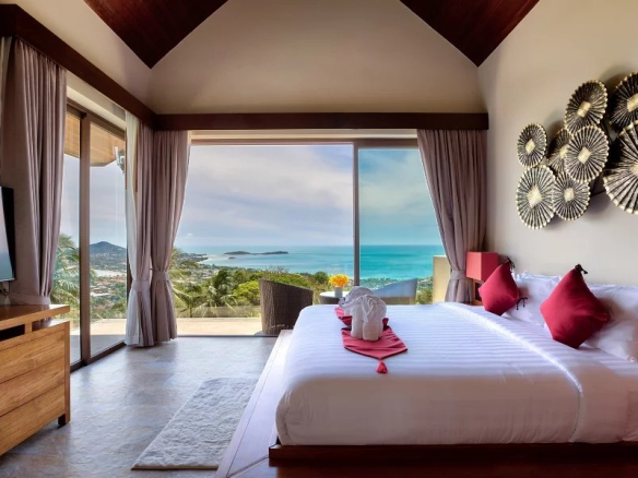 Located on the northeast coast of Koh Samui, a 10-minute drive from Chaweng Beach and the Choeng Mon Peninsula, this magnificent luxury villa offers one of the most breathtaking panoramic sea views on the island.