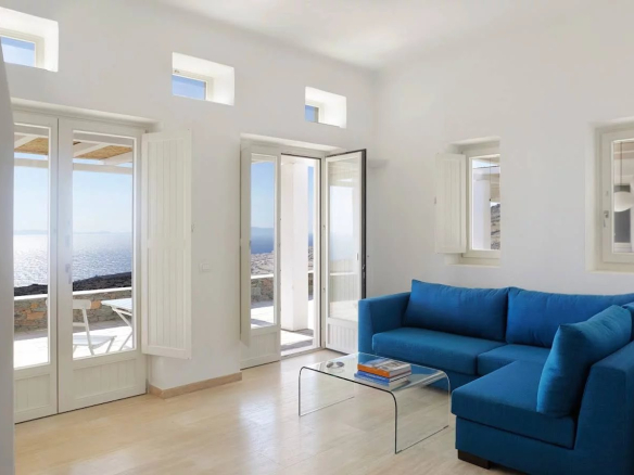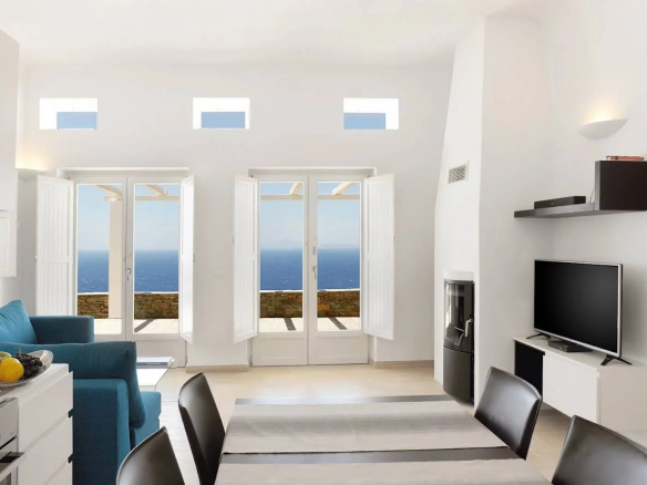 The property offers breathtaking sea views and boasts some of the most spectacular sunsets in the Aegean Sea.