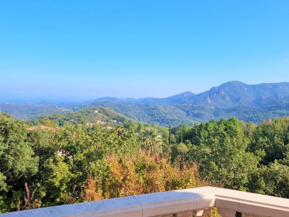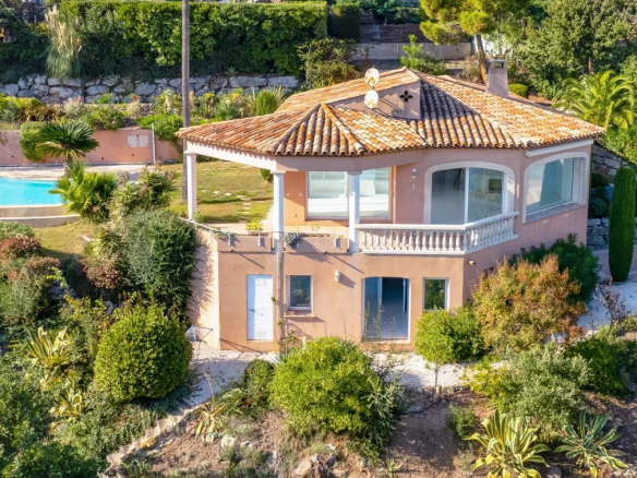 Magnificent 5-room villa with swimming pool, approximately 180m², in an exceptional living environment. A truly exceptional property with a living room offering a magnificent panoramic view of the Lérins Islands and the Esterel coastline.