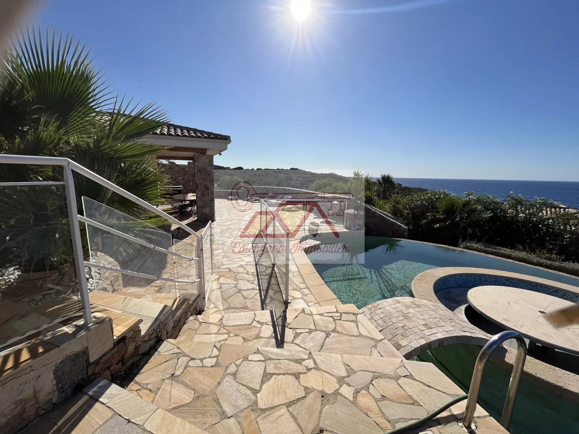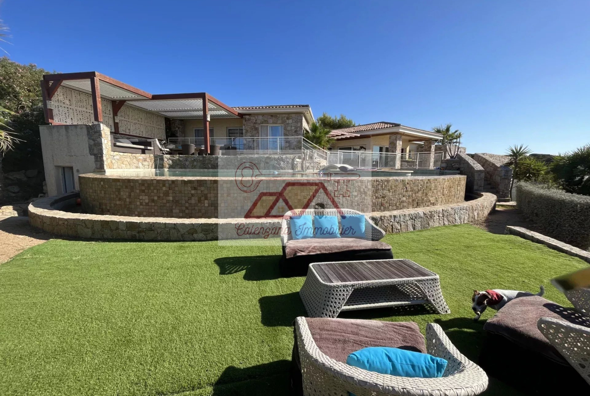 Ideally located between the stunning Spano headland and the port of Sant Ambroggio, in a highly sought-after private estate, this magnificent stone villa offers breathtaking views of the sea and sunsets. Enjoying a