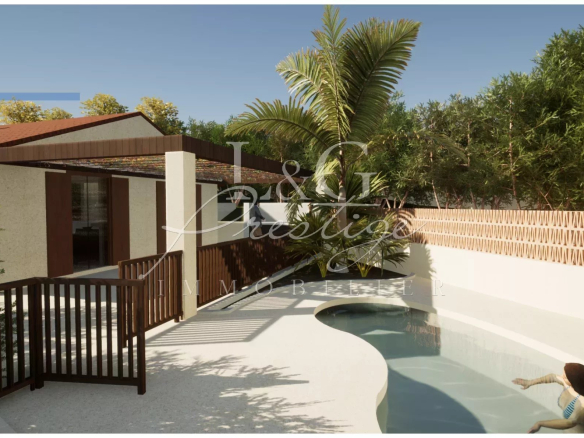 The house, spread over two levels, comprises three bedrooms. The living room, the true heart of the home, opens onto a splendid terrace with a swimming pool, perfect for moments of relaxation and conviviality.
