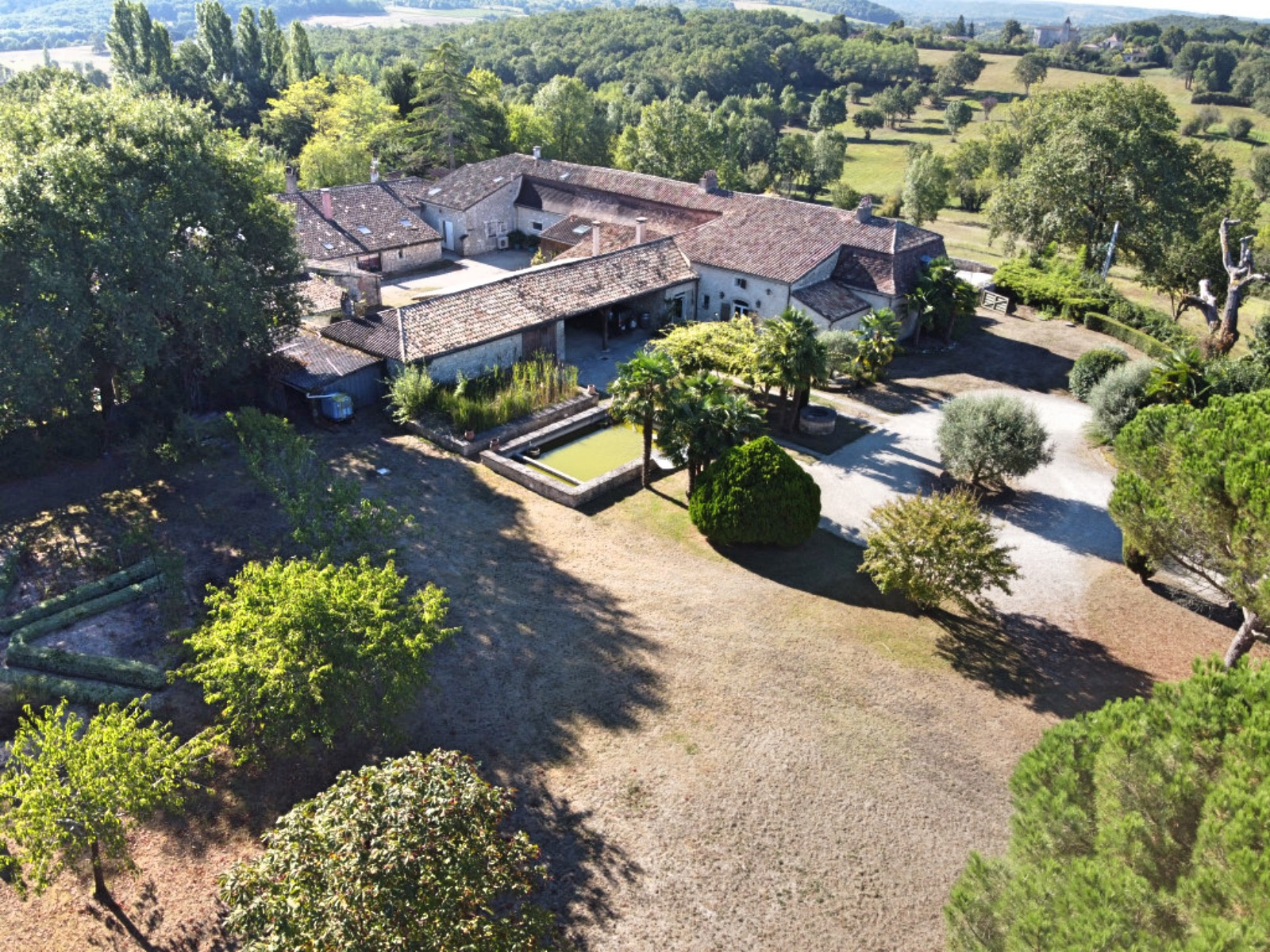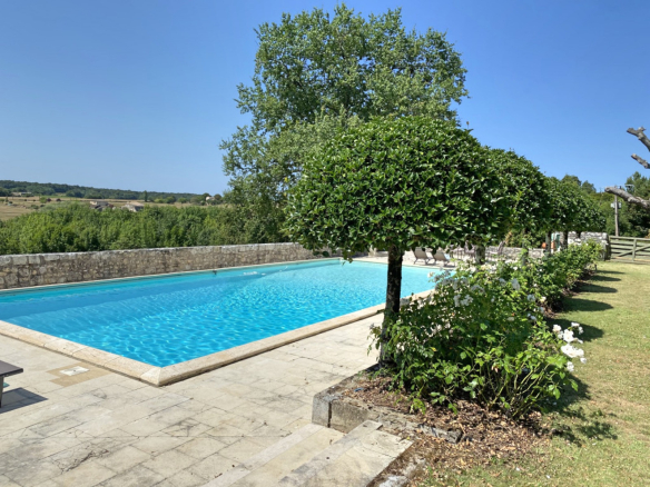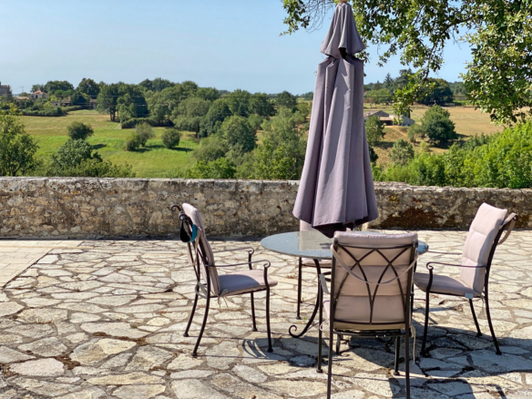 From the south-facing terrace overlooking the property's two swimming pools, you can enjoy breathtaking views of the rolling countryside and the eleven hectares that comprise the estate.