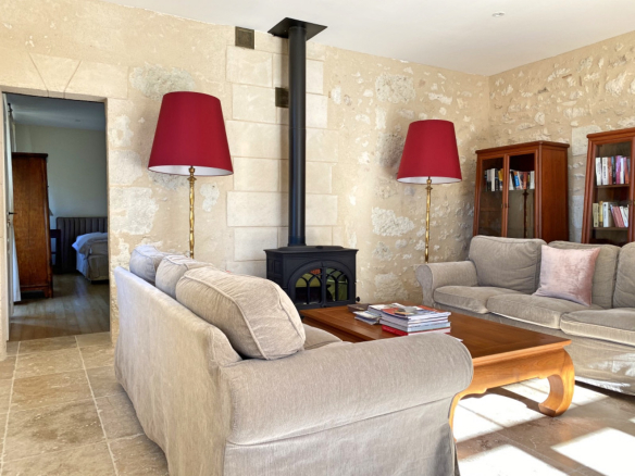 The guest house, with its own private entrance, offers 160 sq m of living space and has been recently renovated. This space comprises a large entrance hall, a bright living room, a fully equipped kitchen, and three bedrooms with en-suite shower/bathrooms.