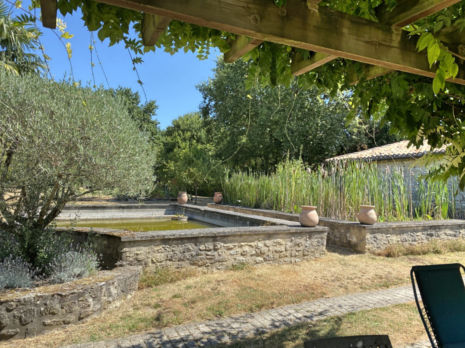 pergola and pond,