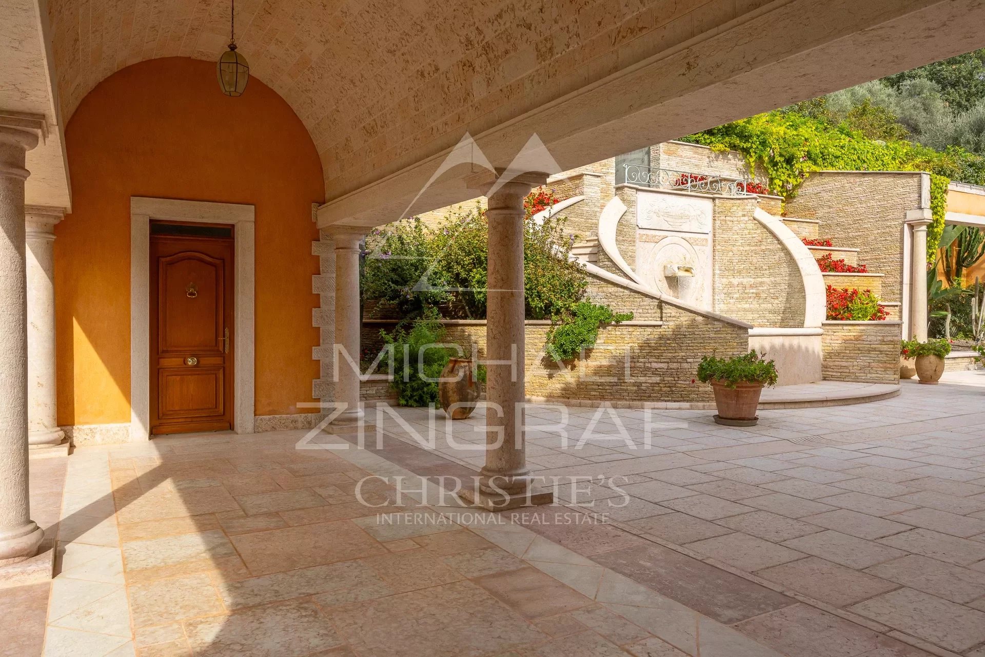 Exclusive listing. Located just 25 minutes from Nice Airport, this expansive manor house offers incredible potential. Nestled on beautifully landscaped grounds with mature trees, it enjoys a commanding position with breathtaking views of the sea and surrounding hills.