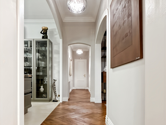 Upstairs, a renovated staircase leads to an elegant and perfectly laid-out master suite: a spacious bedroom (18.12m2), a custom-made dressing room (14.36m2), and a bathroom with toilet (5.46m2).