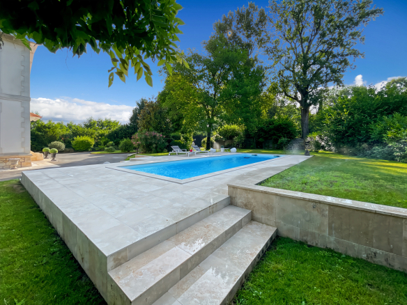 This elegant stone manor house, dating back to 1830, offers approximately 215 square meters of living space with high-end amenities.