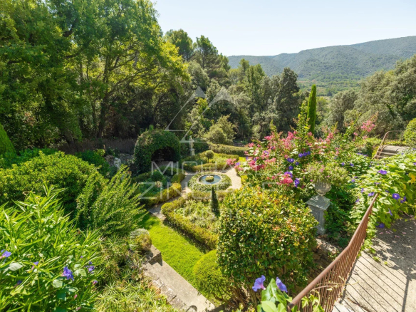 Set on terraced land, the property boasts terraces offering spectacular views of the Luberon, a bucolic French garden, and an infinity pool carved into the rock. All these elements invite relaxation and contemplation.