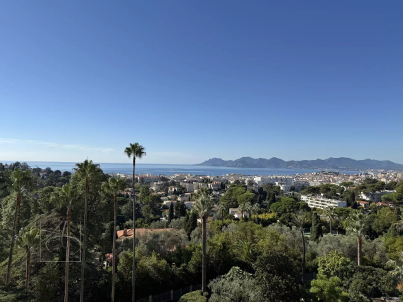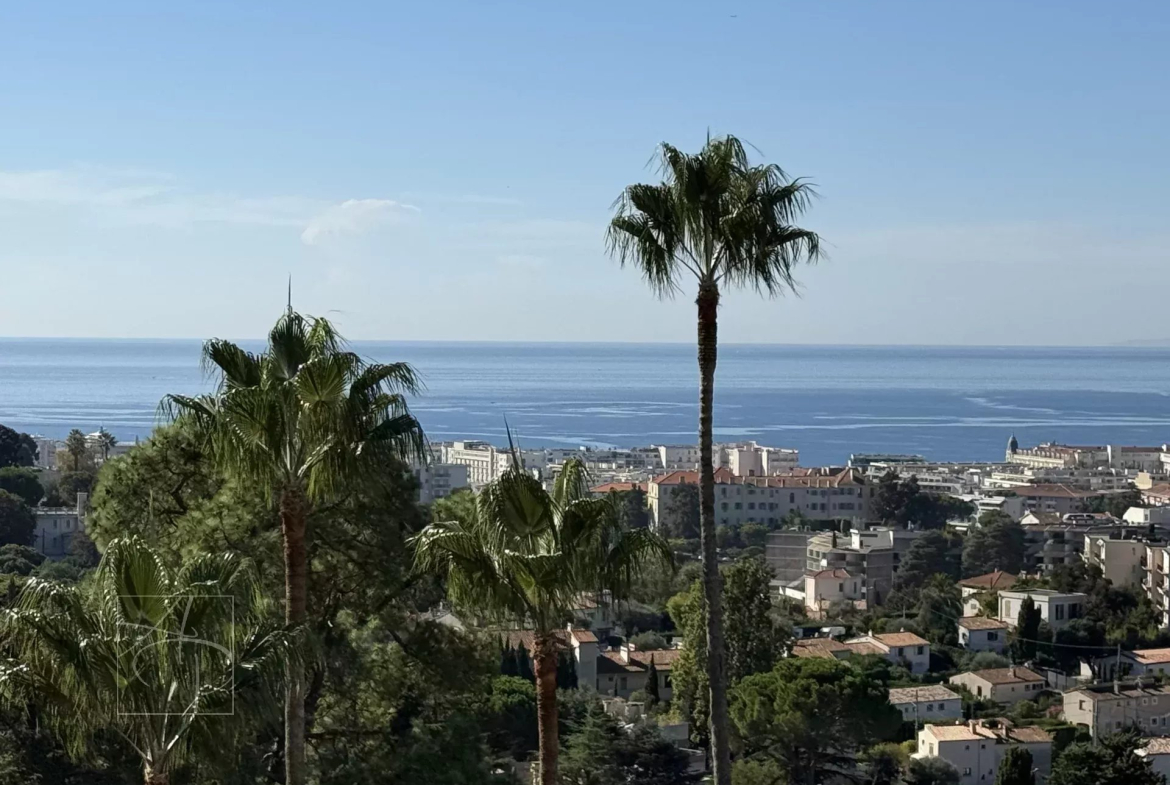 CANNES MONTFLEURY - ISOLA BELLA: Splendid, fully renovated, 2-bedroom apartment with a beautiful, deep terrace offering panoramic sea views from the Lérins Islands to the Esterel mountains. Located in a prestigious residence in the area, just 5 minutes from the Palais des Festivals in Cannes and a 15-minute walk from Rue d'Antibes.