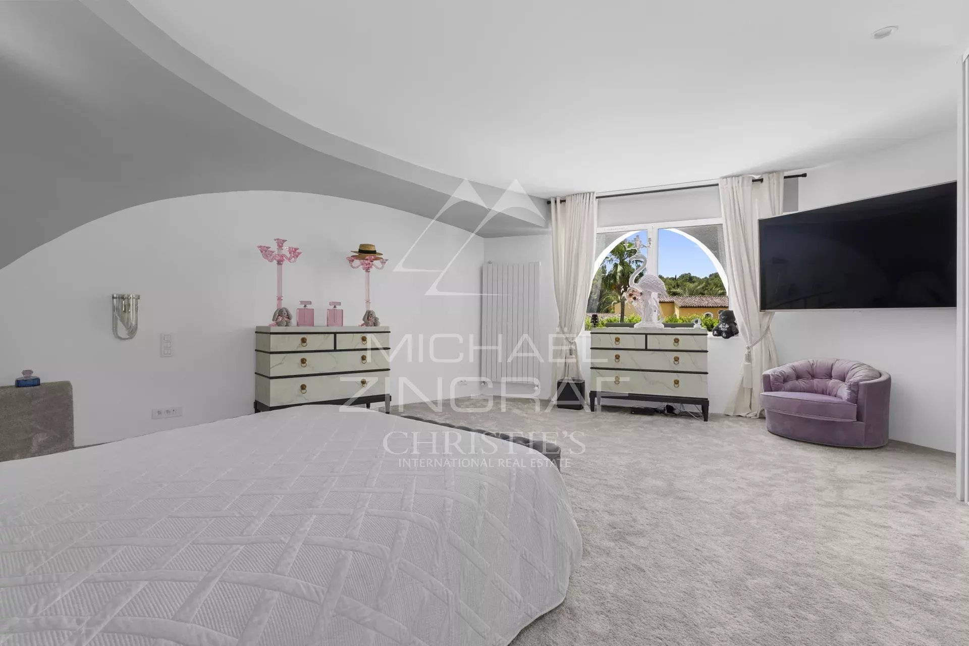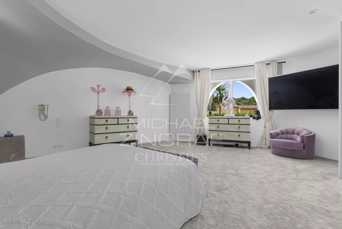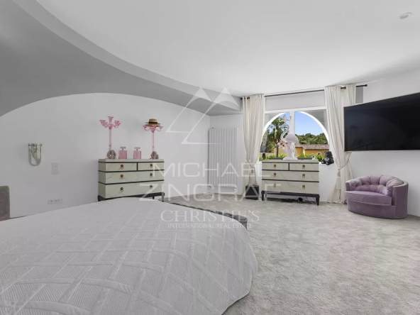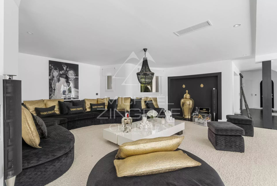 Inspired by the conviviality of the Mediterranean style, the villa seduces with its brightness and its generous volumes. It offers large open living spaces, an elegant master suite as well as four large bedrooms, each with its own bathroom, as well as a office, a cinema room, a sauna and 60m2 of technical and outbuildings.
